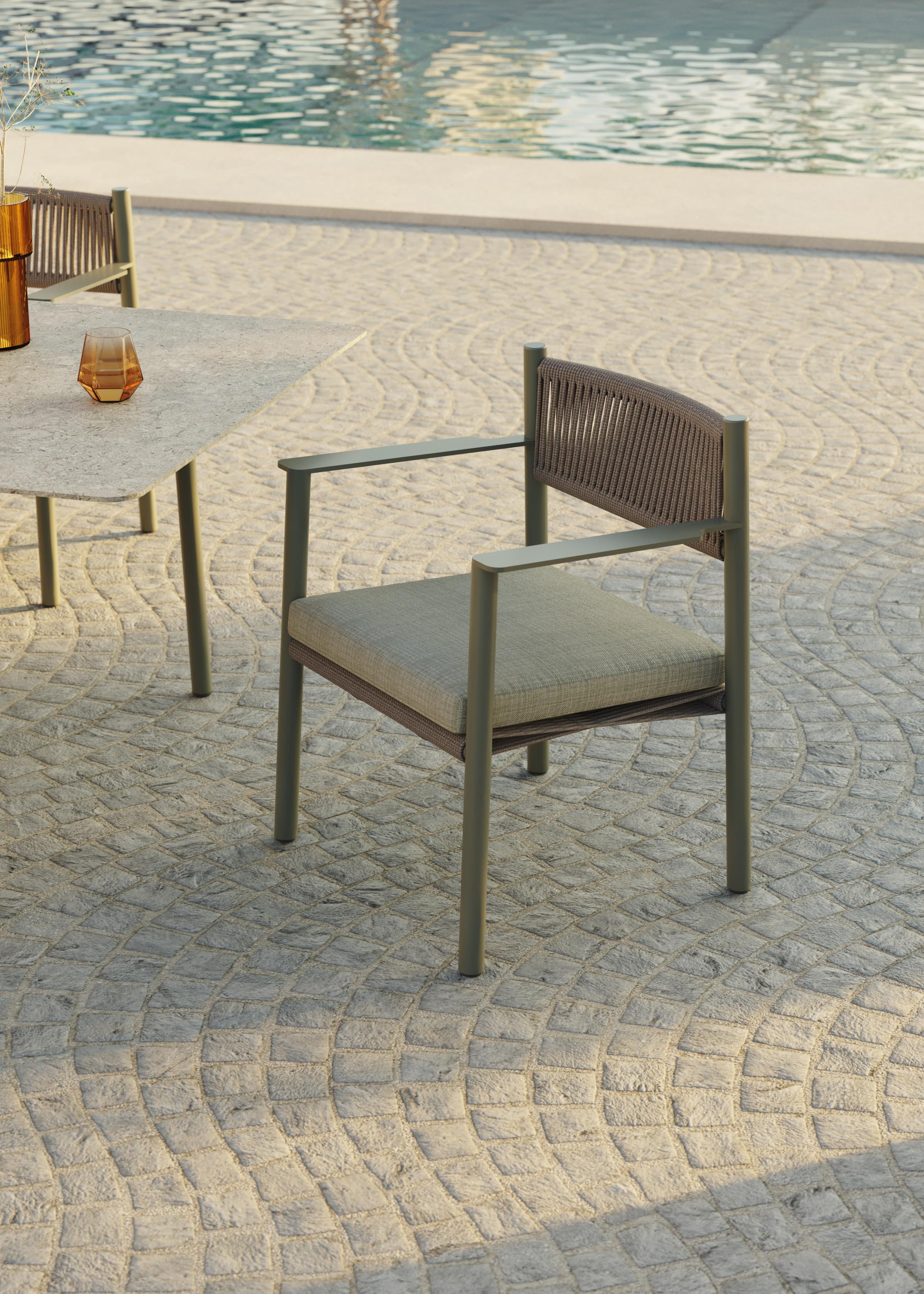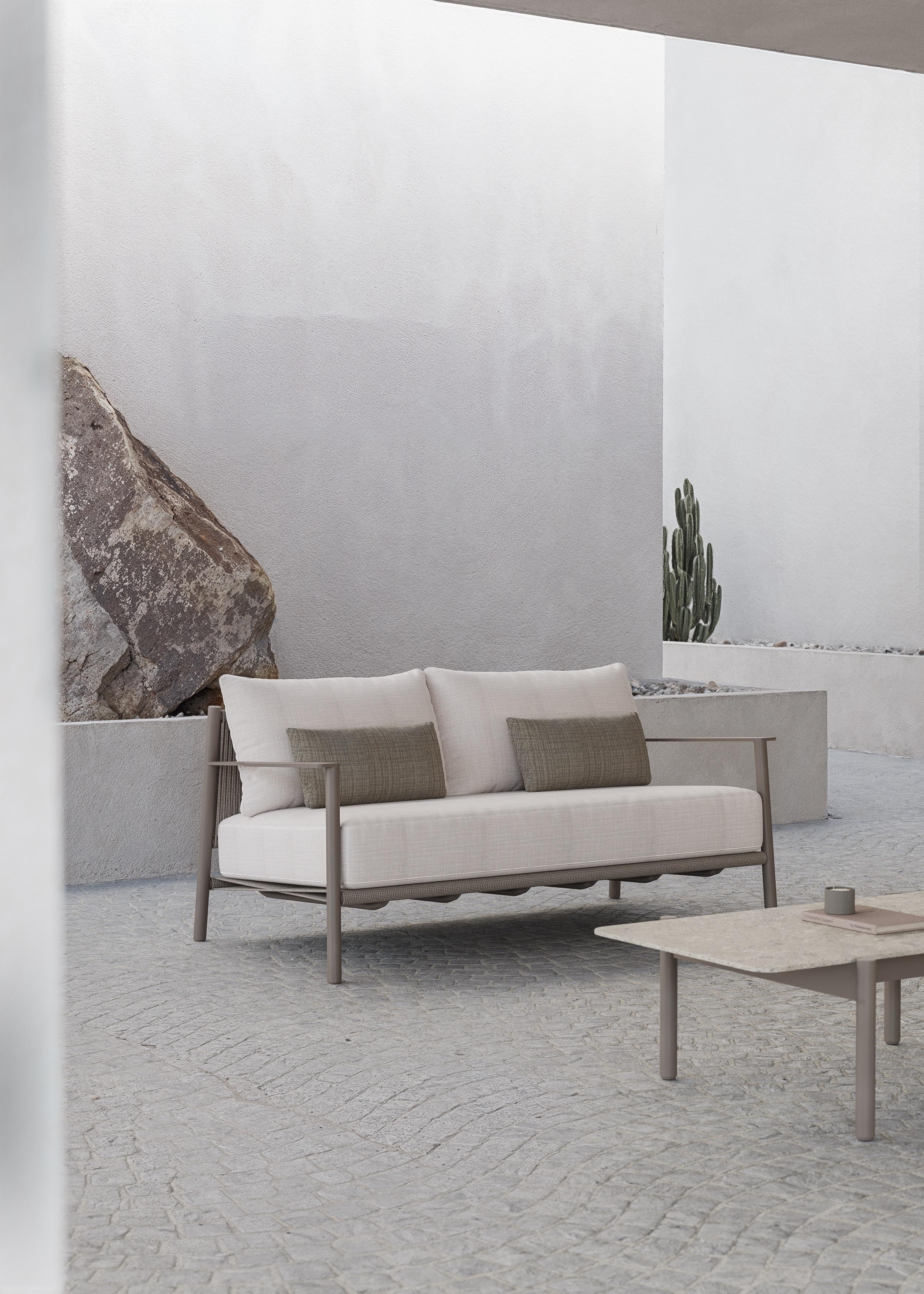 NARA balances craftsmanship and industrial precision. The lines of the structure engage in dialogue with the handwoven cord, while the upholstery embraces it.