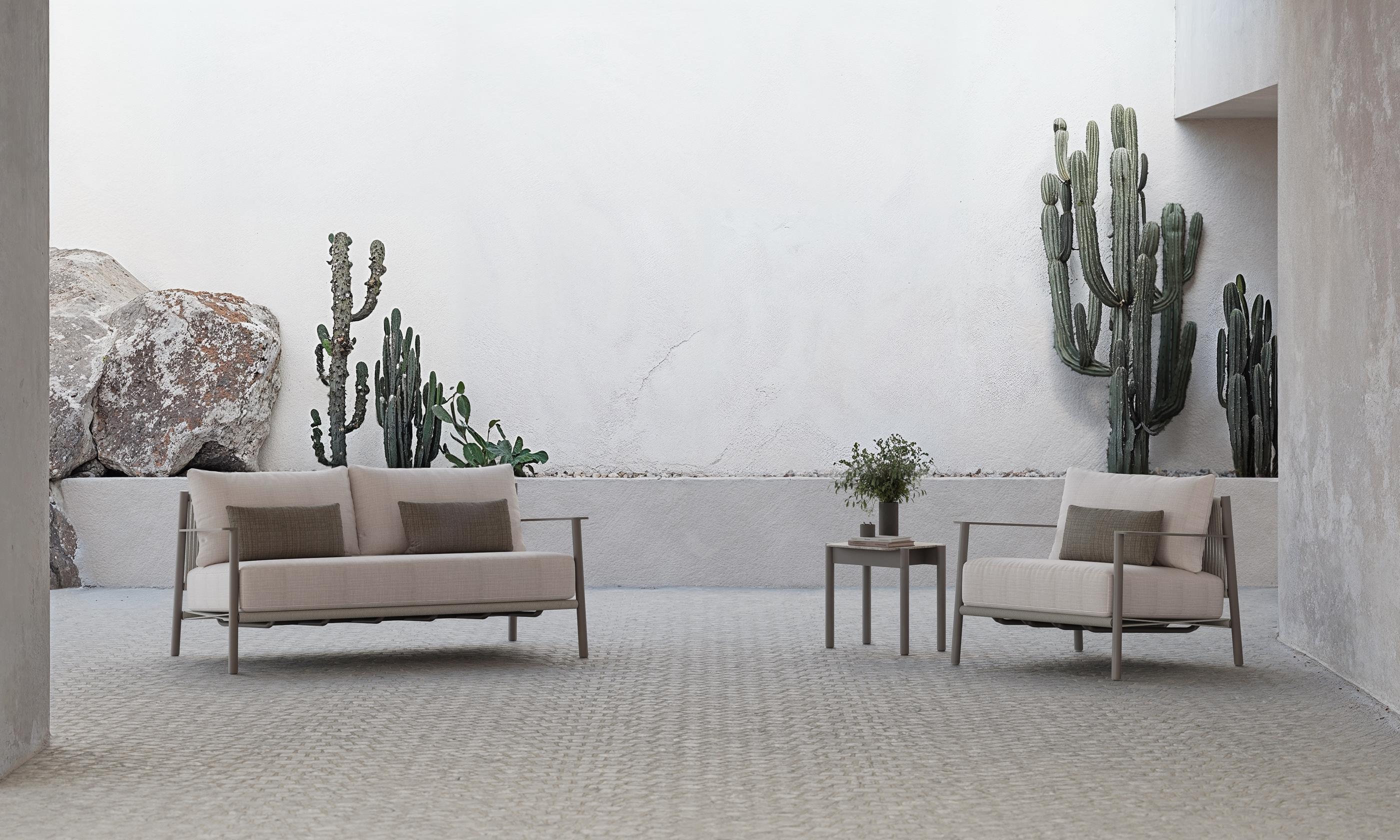 The detail of the armrests and the coherence among the pieces complete an essential, natural, and elegant collection.